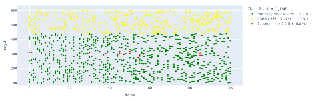 Switching a GPIO at the beginning and at the end of the targeted instructions provides a reliable trigger we can use for this search, greatly reducing the range of injection delays to test. After several attempts, we found different sets of parameters that faulted our microcontroller.