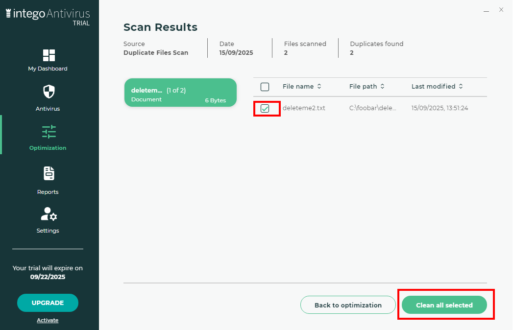 Intego includes an optimization module that scans for duplicate files and offers to delete them. This feature is usable by unprivileged users and it works as follows: