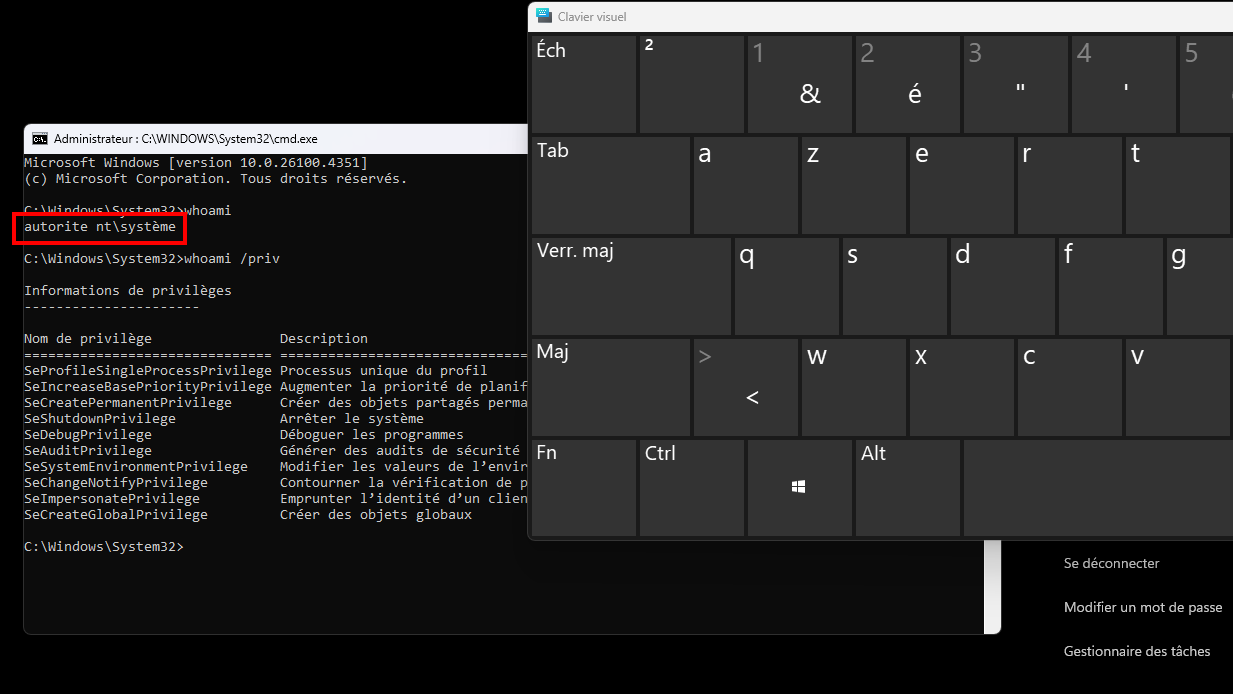 Now, enjoy. Exploit is working, IavService.exe has removed the C:\config.msi and we can now spawn a SYSTEM shell by running the virtual keyboard by pressing CTRL+ALT+DEL.